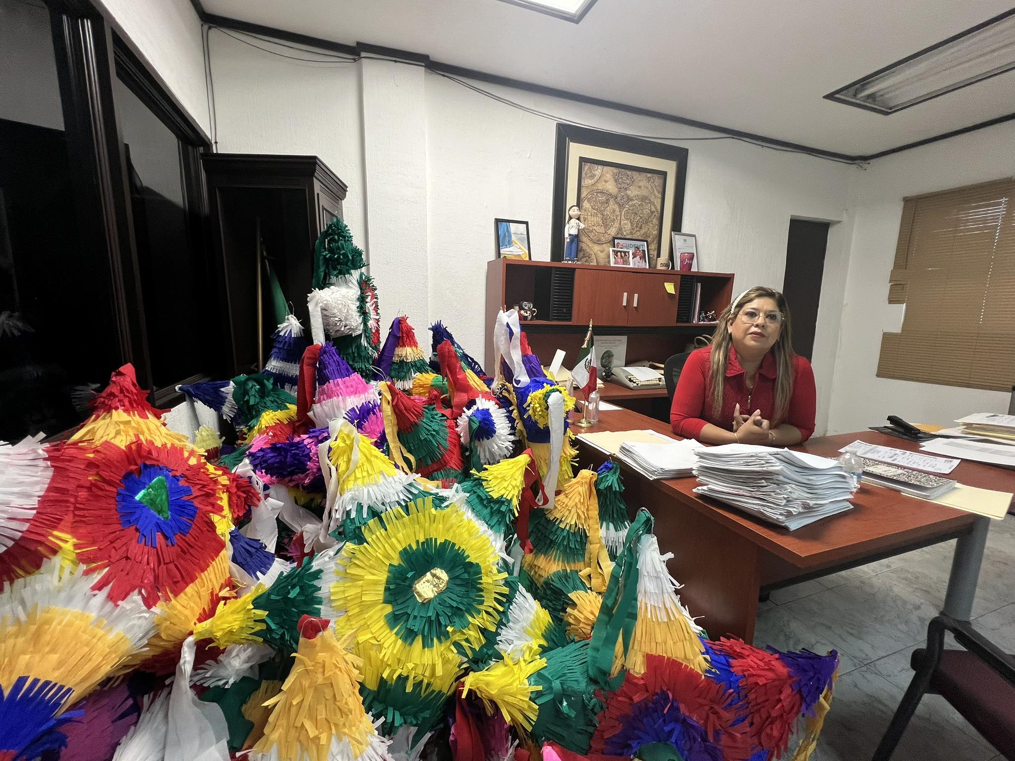 La dirigencia del PRI, a cargo de Yanín García, anunció que la entrega de estas figuras se llevará a cabo en diversas colonias de la ciudad. Además de las 500 piñatas para distribución, se informó que 460 unidades fueron «vestidas» con adornos, aunque el proceso tuvo una pausa temporal por la presencia de una brigada.