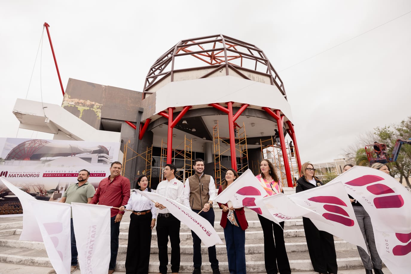 H. Matamoros, Tamaulipas.- El presidente municipal de Matamoros, Beto Granados, encabeza los trabajos de rehabilitación de la Concha Acústica del Parque Olímpico, un espacio emblemático que permaneció en abandono por más de 13 años y que hoy forma parte de un proyecto estratégico para la recuperación de espacios públicos.