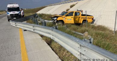La unidad siniestrada es un tractocamión marca International, con placas de circulación 71-AM-50 y con razón social de Grupo Directo Express.